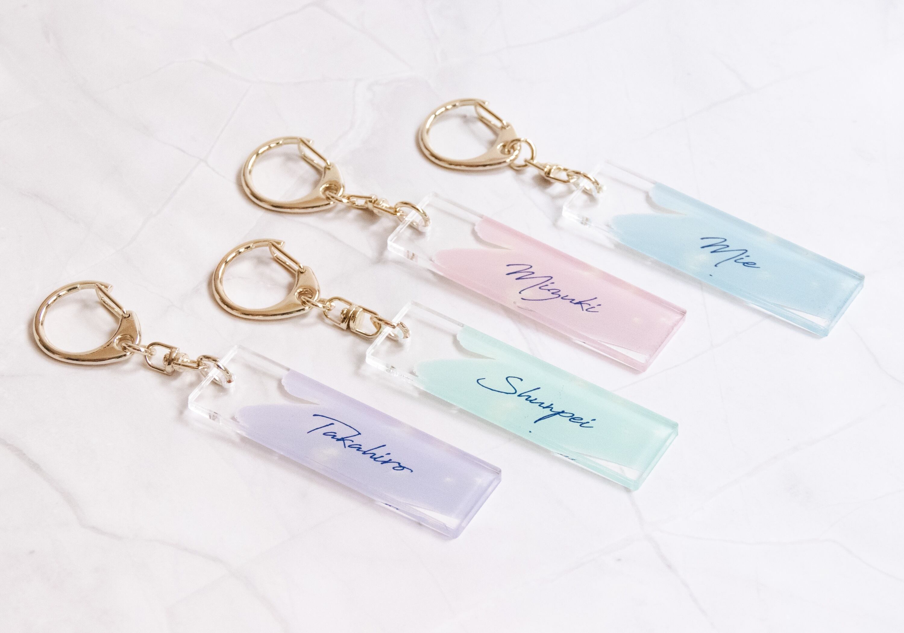 パステルカラーのオリジナルキーチャーム。 星屑に見立てたイエローのポイントドローイングがされています。 厚みは3mmのアクリルを使用し制作。 結婚式の席札の他、プチギフト/ノベルティ/記念品にもご利用いただけます。 お名前以外のテキストでもご注文可能です。 【カラー種類】 A:パステルブルー B:パステルピンク C:パステルグリーン D:パステルパープル 【注文の流れ】 1:種類選択より希望のカラー,個数を追加しご購入 2:ネームリストを送信 送信先は以下のいずれかとなります。 ・Creema取引ページのメッセージ機能 ・公式LINE:https://page.line.me/kinacreate (ID :@kinacreate) ・公式Mail:[email protected] 3:上記内容の確認が完了しましたら、折り返しご連絡いたします。その後データ作成となりますため、修正等ございます際はこの時点でお伝えください。 【注意】 アクリルを使用し作品作りを行っております。 十分に注意して加工を行っておりますが作成の過程で小さな傷やくもりが発生する可能性がございます。ご了承ください。 【よくあるご質問】 Q1:購入から納品までの目安は? A1:基本的にはご購入から7日ほどで発送となります。ご注文の内容に不備があった場合や、配送方法による日数の前後につきましては責任を負いかねますので、余裕を持ったご注文をお願いいたします。 Q2:納品日時に希望があるときは? A2:確実な納品希望日がある場合は、事前にメッセージ等でご相談ください。 お急ぎでの対応が必要な場合、+1,200円にて優先加工をさせていただきます。但し、対応可能な場合に限ります。 基本的にはオーダーの順番でご対応させていただいており、皆様へ平等なサービス提供を行いたい為ご理解賜りますようお願いいたします。 Q3:席札の用途以外にも注文が可能? A3:勿論可能です。文字数が多い場合(例:15文字以上)などはテキストが小さくなりますので、お名前以外のテキスト入れでご心配な場合は、事前にご相談ください。